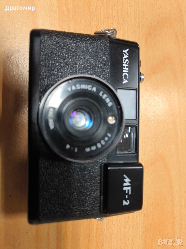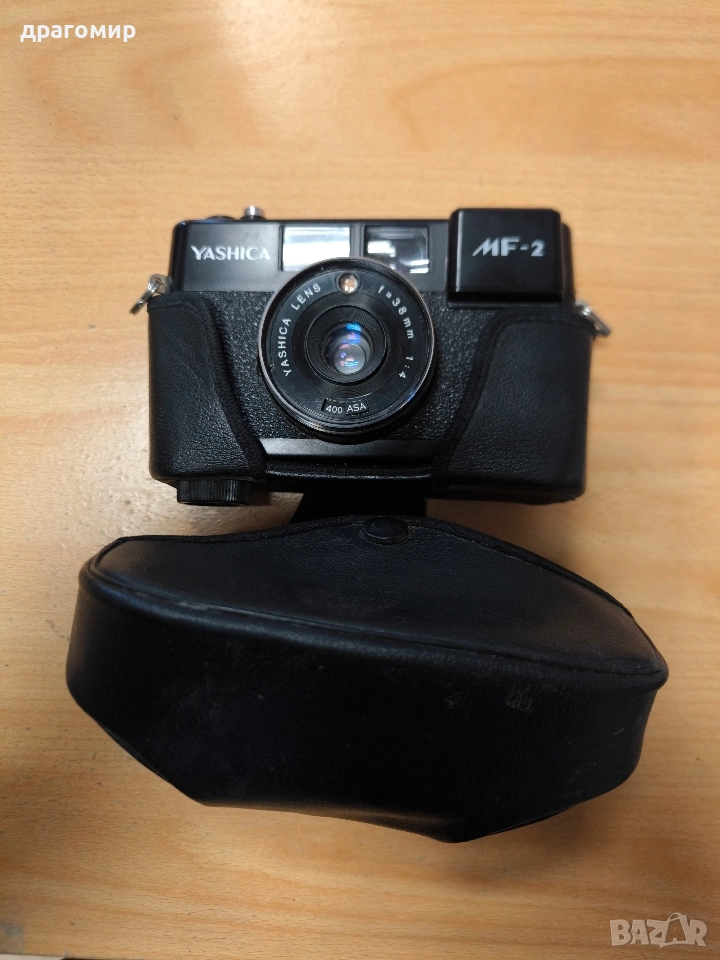 продавам лентов фотоапарат, работи,с кожен калъф е, YASHICA MF-2, работи с две батерии АА по 1, 5 v, имам още много други фотоапарати, камери, обективи, чанти, светкавици, батерии, зарядни устройства, касети, филтри, ремъци, ленти, при закупуване на повече неща отстъпка
