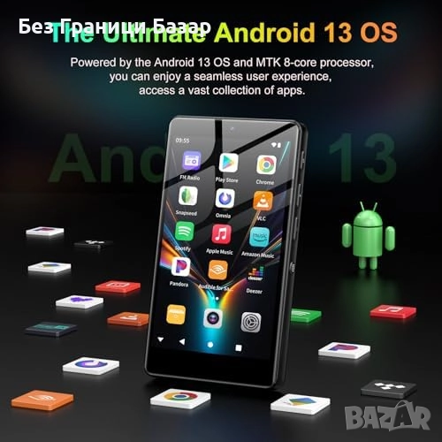 Android 13 MP3/MP4 плейър с бърз 8-ядрен MTK процесор
