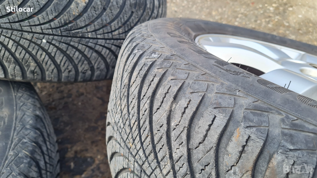 64.1 главина ,6.5 J широки,ЕТ 50.,с гуми Goodyear ,всесезонни ,размер 225/65/R17, 4мм и 6мм другите две.Джантите са без заварки по тях,в добро състояние,имат следи от употреба.Продават се комплект.