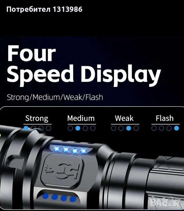 С много ярка светлина, с 4 режима на работа (различна осветеност).