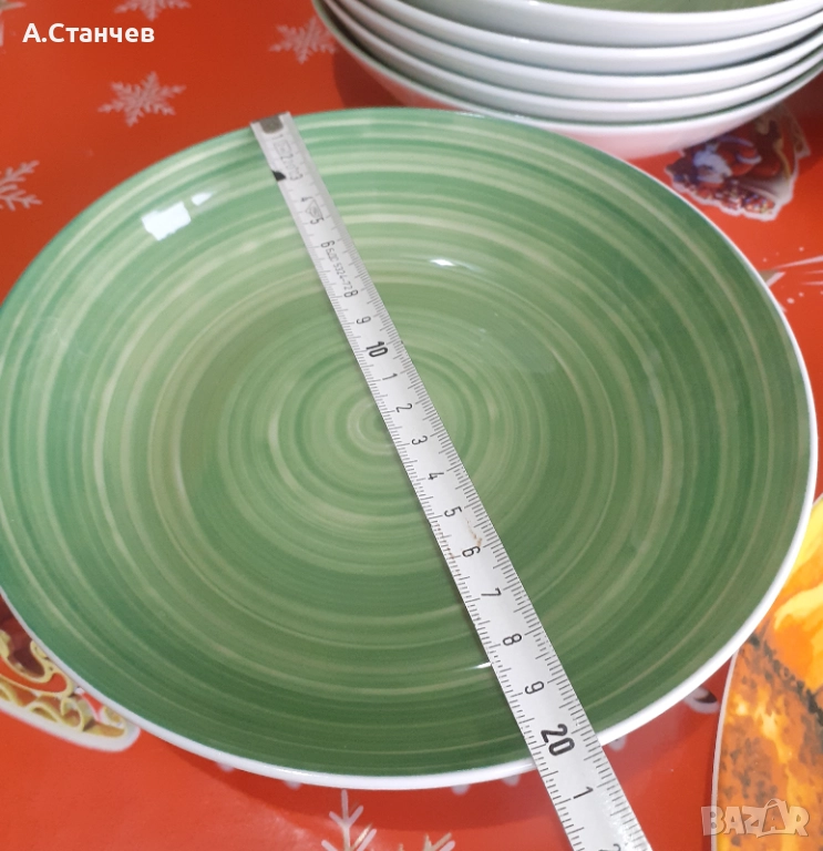 Материал - порцелан.Подходящ за микровълнова печка и съдомиялна машина.Размерите ги има на снимките.