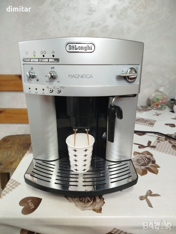 Тази напълно автоматична кафе автомат Delonghi Magnifica ECO е подходяща за всеки дом или офис . Лесно управляема и компактна, тя ще обогати живота ви с приятния аромат и вкус на перфектното еспресо . Благодарение на вградената си капучино система за затопляне на топла вода за чай и затопля мляко на кремообразна пяна за капучино може да угоди на вкусовете на цялото семейство.