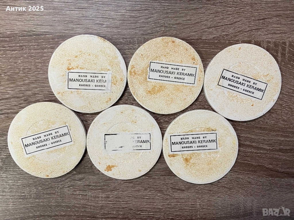 Винтидж комплект керамични подложки за горещо, ръчна изработка Manousaki Keramik, Родос, Гърция