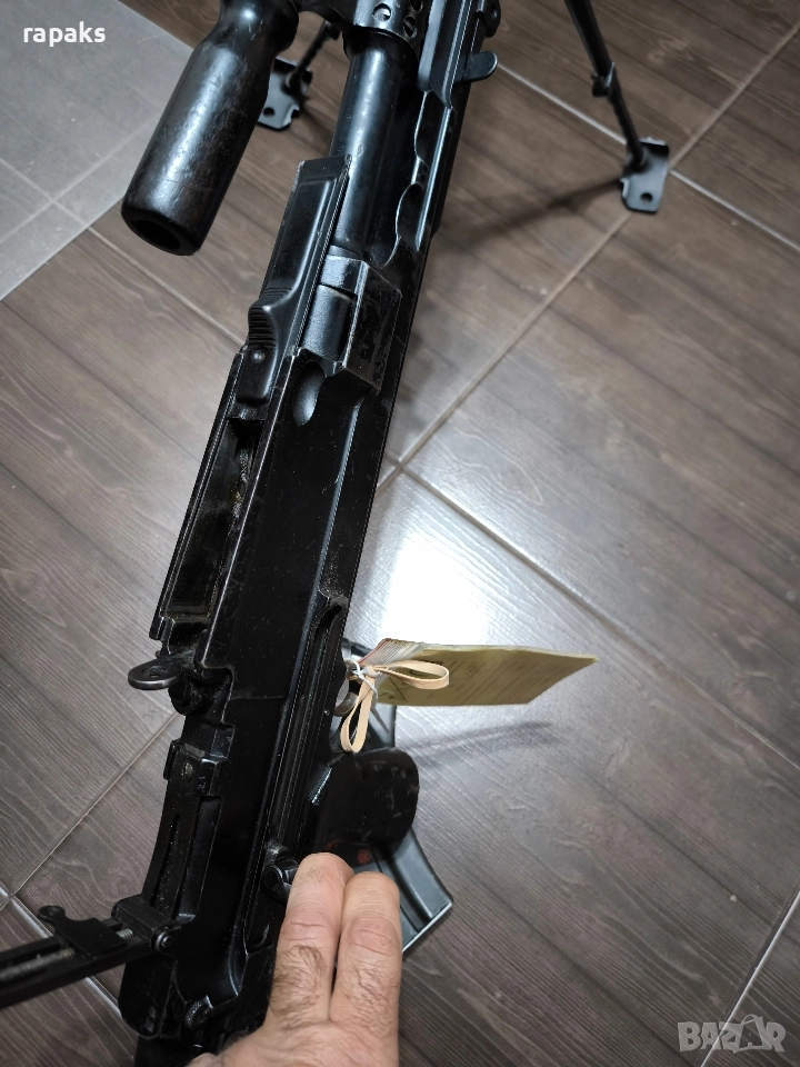 деактивирана/ обезопасена лека картечница. Всеки механизъм се движи, но не задържа за да може да щрака. Невидими следи от деактивиран ето. Наличен и видим на снимките протокол за деактивиран. Продава се в комплект с куфар и 13 пълнителя. Само лично предаване или при определени условия по еконт. Първо уточнете доставката и след това купувайте. Имайте в предвид че картечницата се продава и в други сайтове и е възможно в един момент тя да не е налична, въпреки че обявата и тук е все още активна. Продавам множество в обявите си още реплики на оръжия, деактивирани, както и старинни такива на свободен режим. Разгледайте обявите ми и се наслаждавайте.