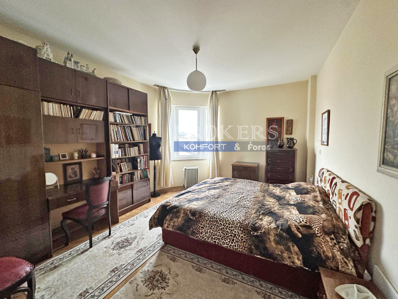 Апартаментът е със затроена площ от 135 кв.м. и е разположен на четвърти, непоследен, жилищен етаж. Площта е разпределена в дневна с изглед към площада и операта, три спални, кухня с трапезария, две бани с тоалетни и вестибюл. Изложението е юг, изток, запад. Таваните са над 2,70, което дава допълнително усещане за простор.