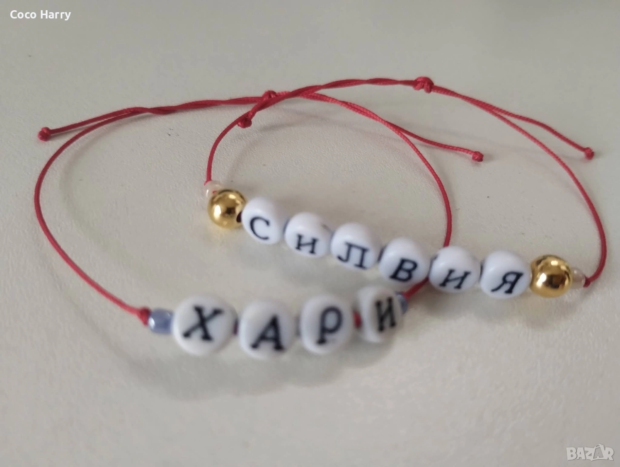 Гривни с име,на червен конец,ръчно изработени → Обява 52876122