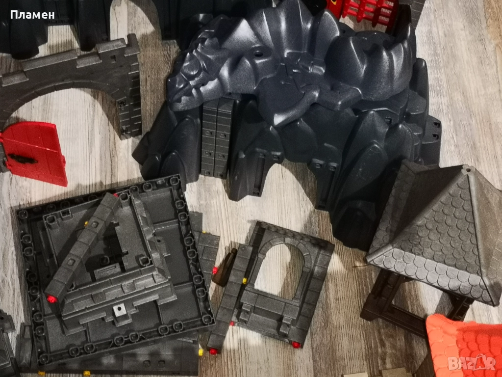 Много играчки Плеймобил Playmobil - замъци, ветеринарна клиника, скали, пещери, човечета, животни, дървета и аксесоари.