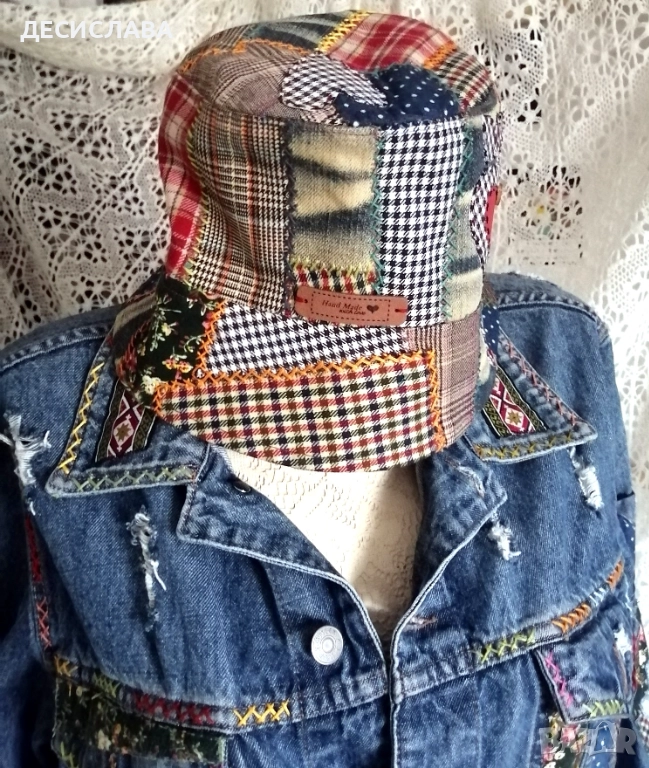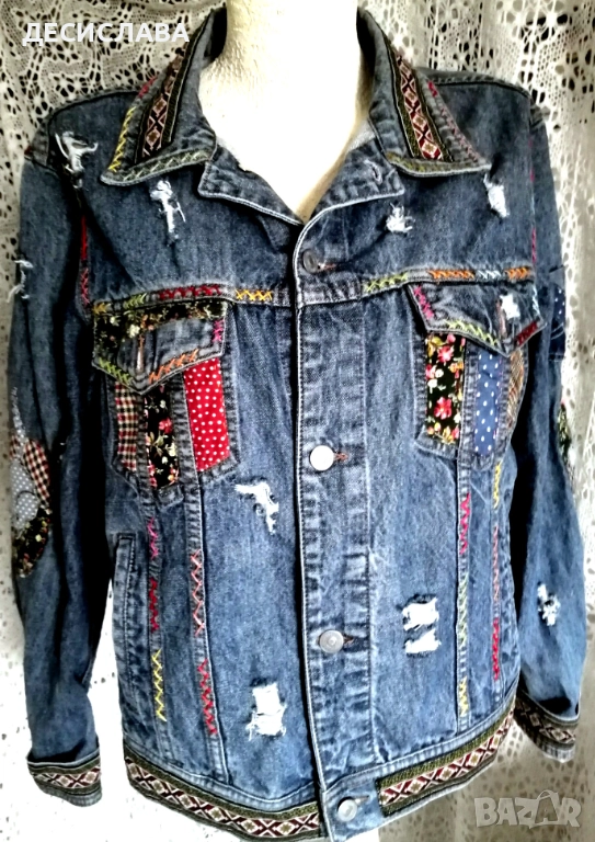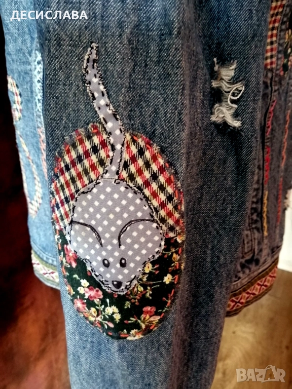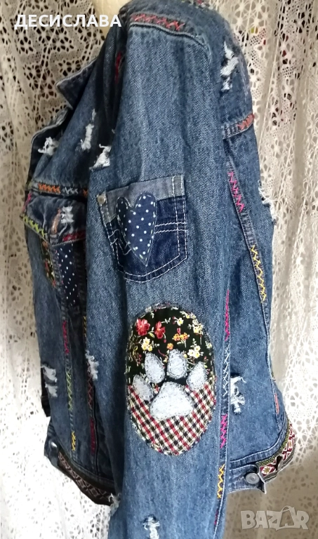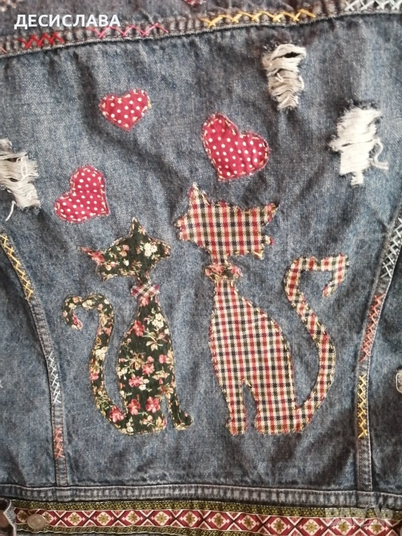 Дънково/деним яке M/L Котки ръчна декорация → Обява 52876559