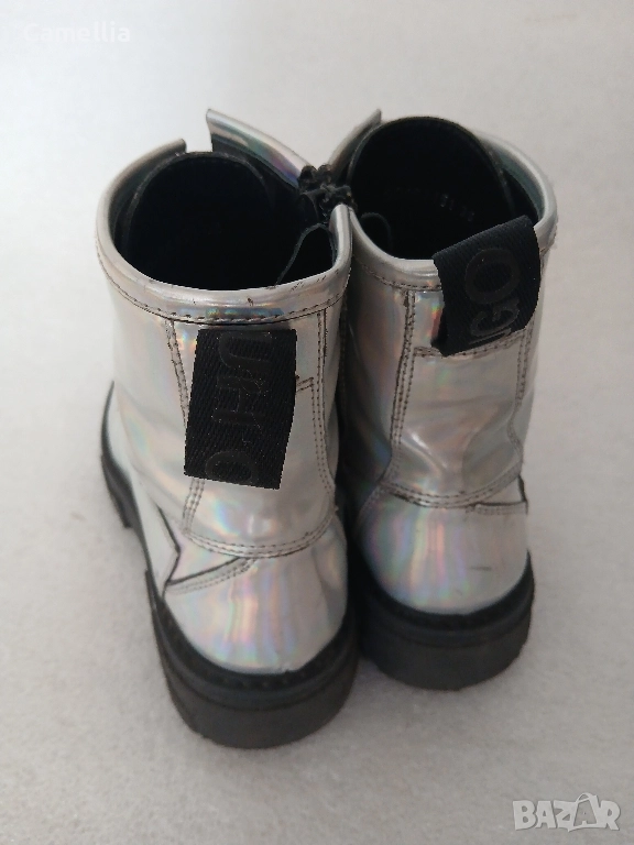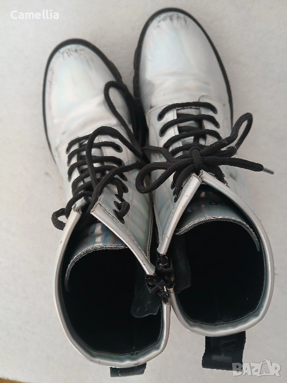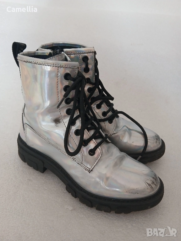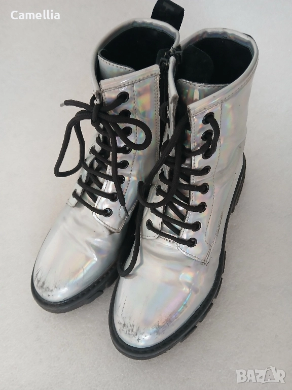 Дамски боти, марка: Hugo Boss. В сребърист, отразяващ се цвят.