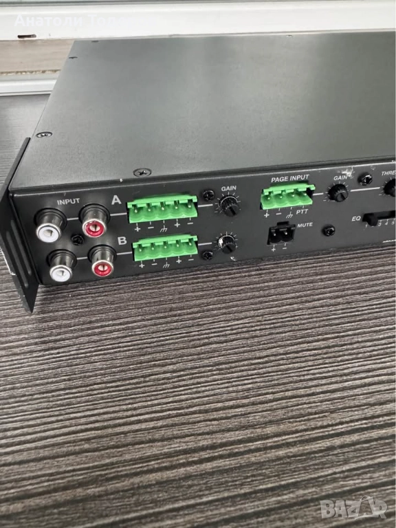 Усилвателя е клас D 2x120w на 4om в отлично техническо състояние !