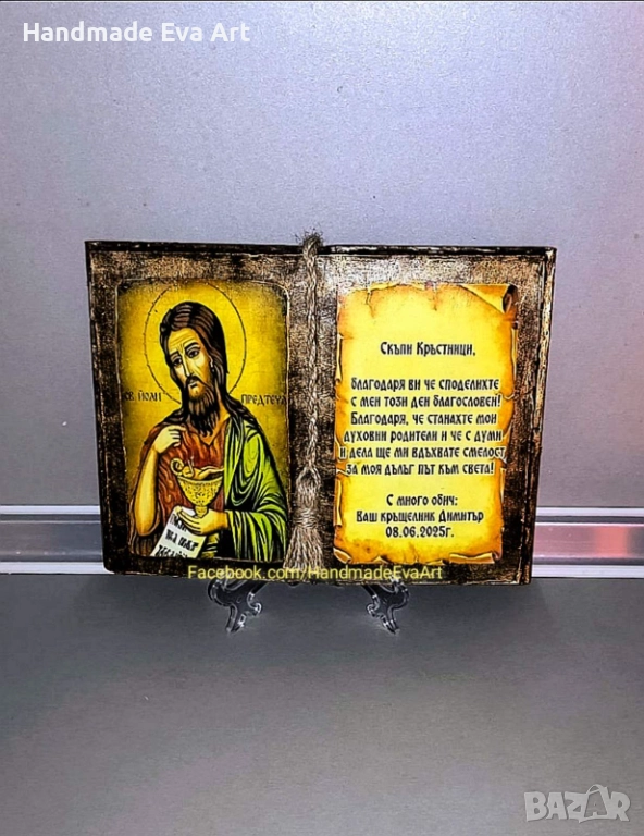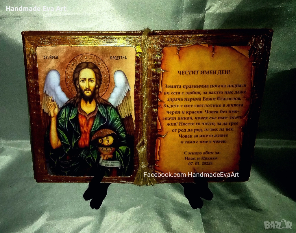 Икона на Св. Йоан Кръстител+ поздрав- върху старинна книга → Обява 52876820