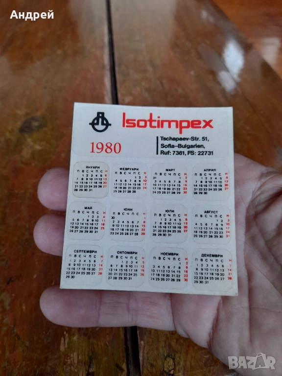 Календарче Изотимпекс 1980 → Обява 52876827