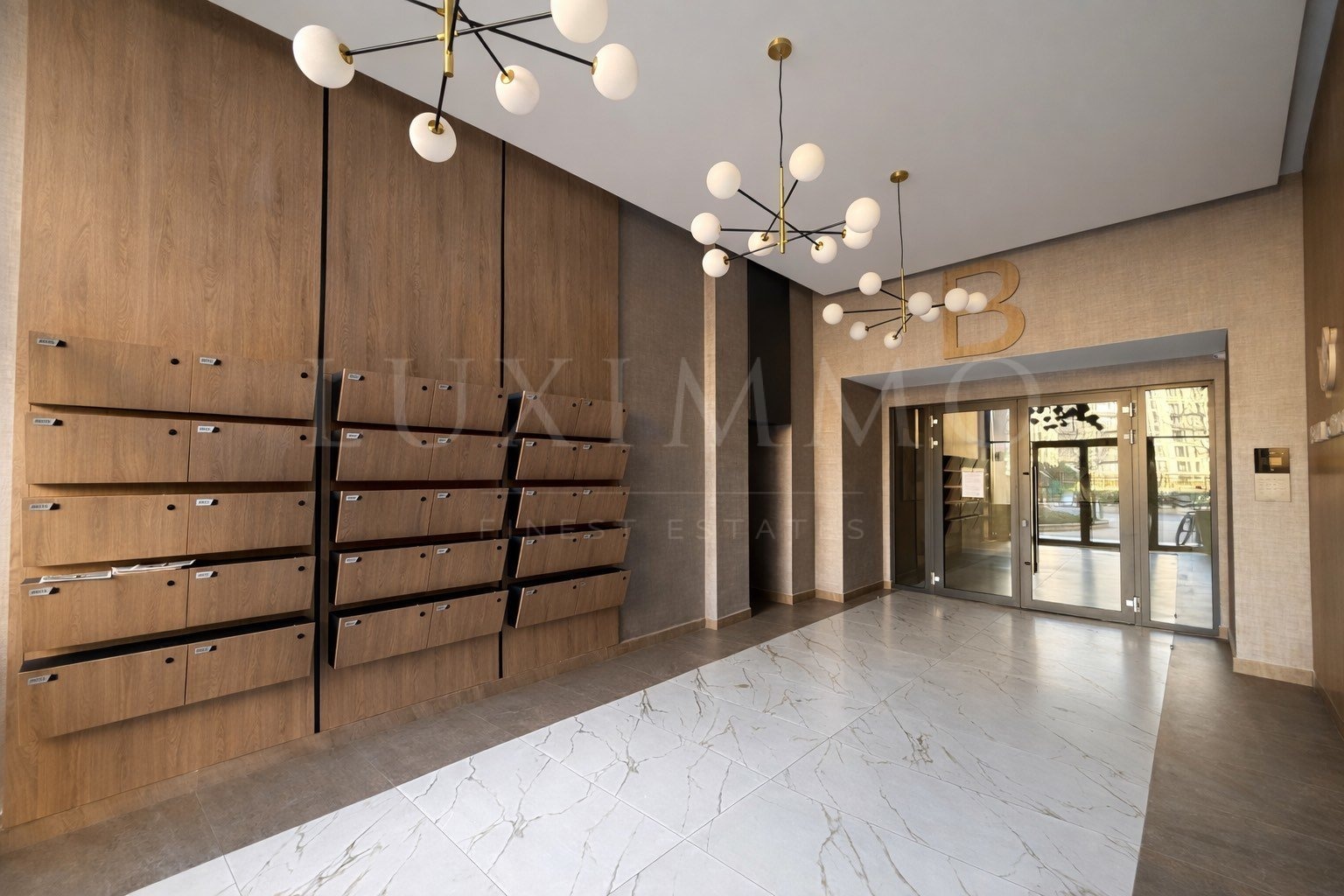 Апартаментът е напълно обзаведен и оборудван с висок клас AEG уреди, включително пералня, сушилня и миялна. Прекарани са телевизия и Интернет. В спалнята е предвидено допълнително пространство за багаж чрез подматрачно съхранение.