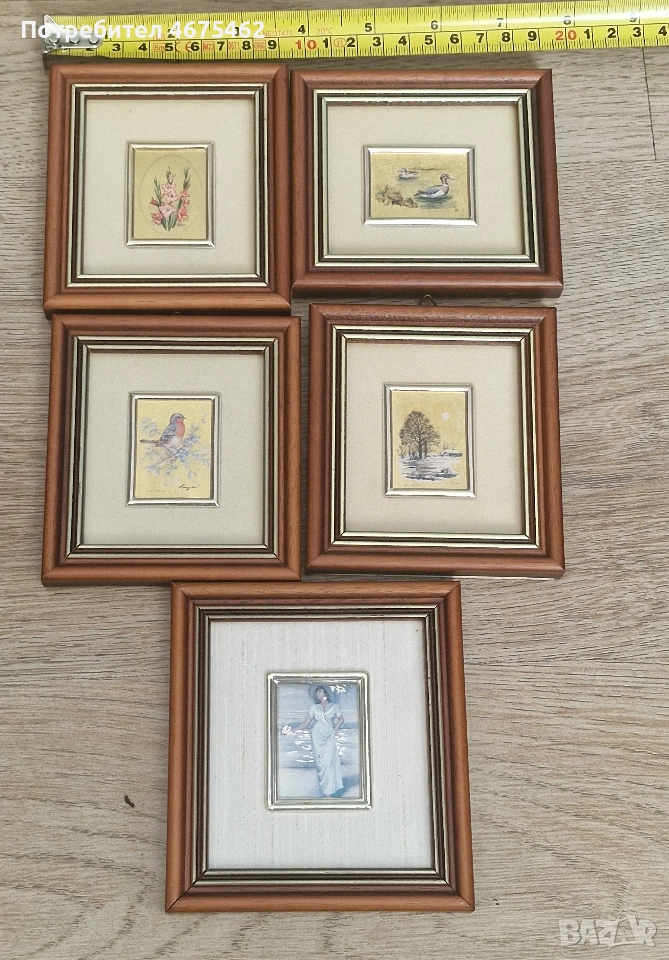 - Красиви миниатюри в дървена рамка, изобразяващи различни природни сцени
