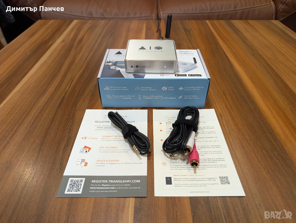 Triangle AIO C. На практика нов. От официалния представител за България Aspero Audio. Оставаща гаранция още 4 години и половина! Пълен комплект, с опаковки, захранващ адаптор, кабели.