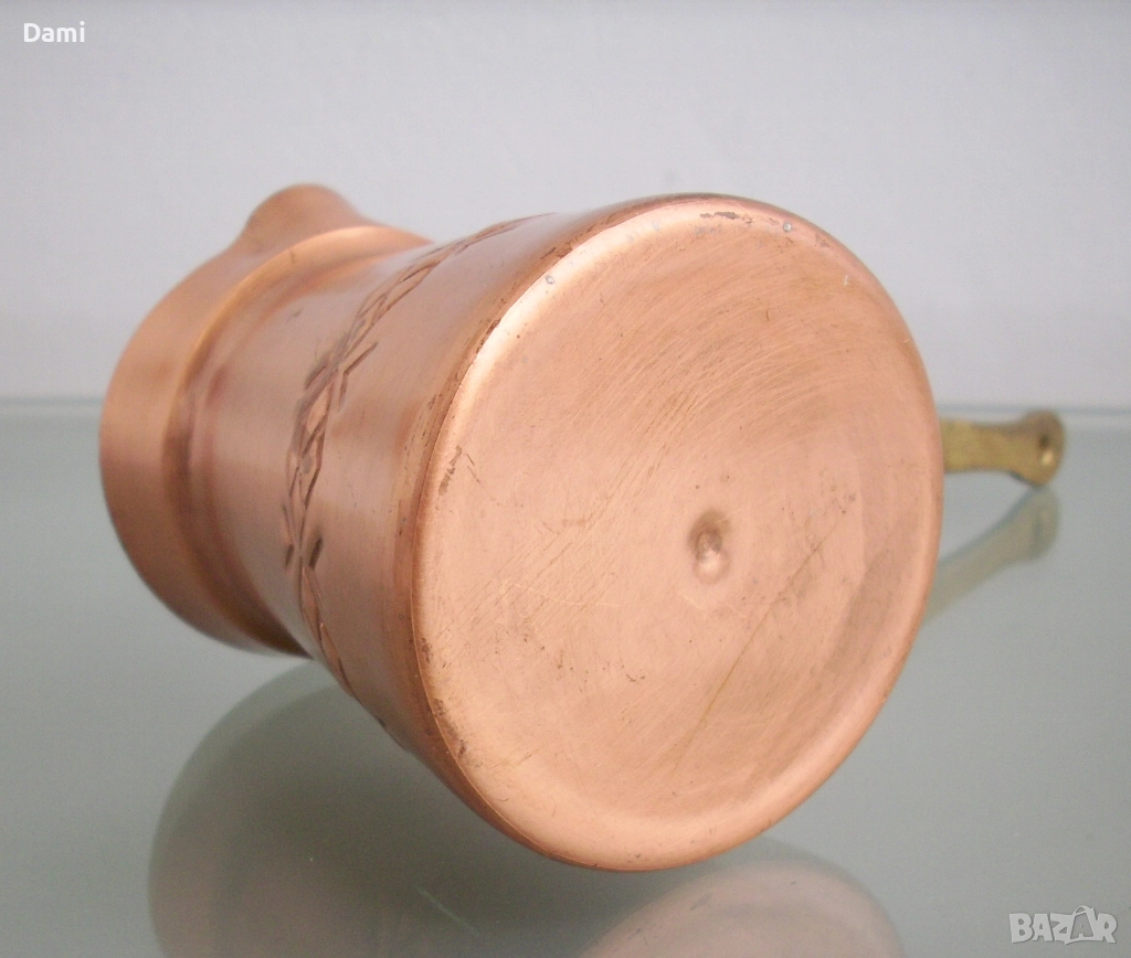 1. Ръчно ковано и гравирано медно / бакърено джезве с улей и масивна