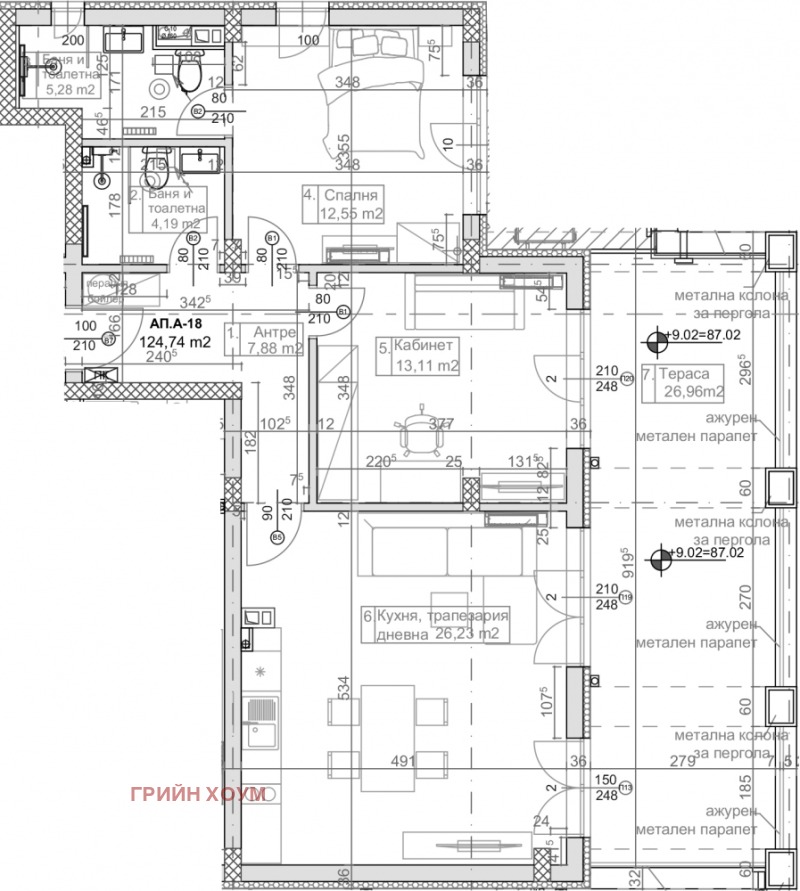 Родителска спалня 13,11 кв.м, Баня с тоалетна 5,28 кв.м, функционално проектирана