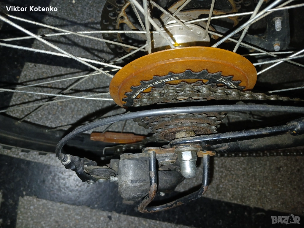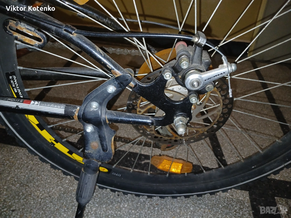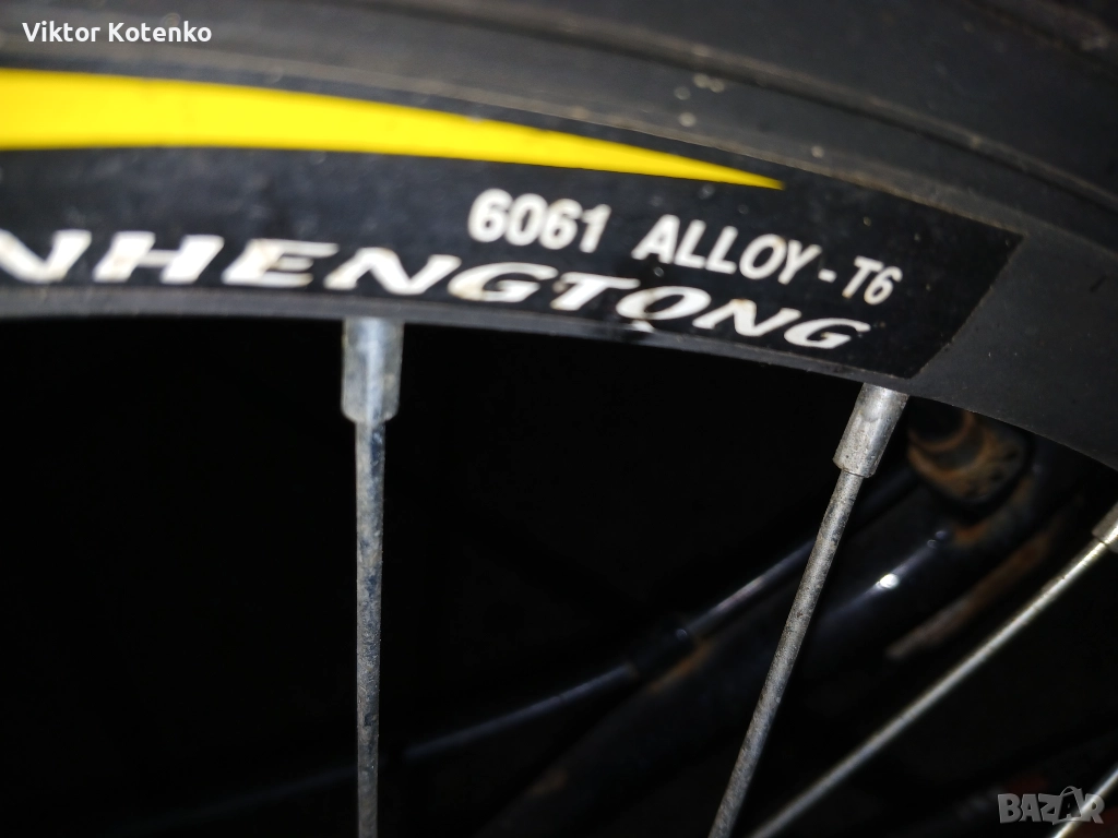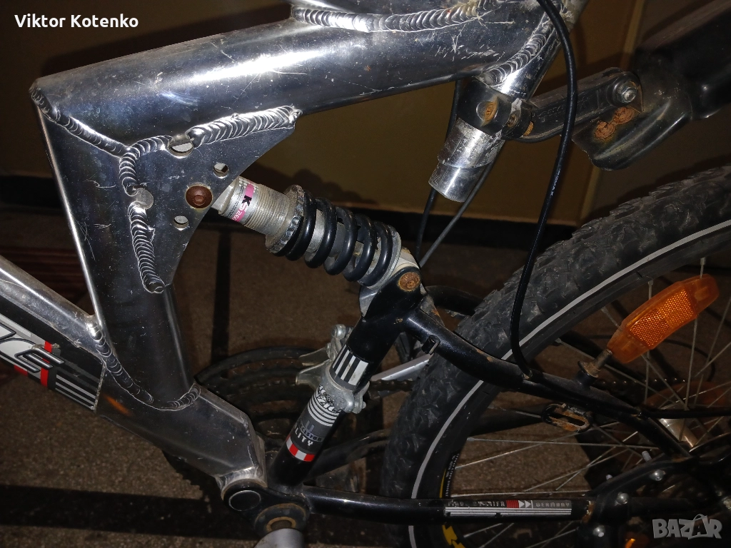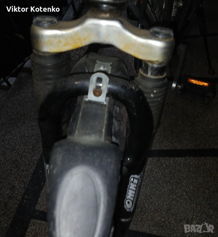 Всичко е видно от снимките – алуминиева рамка, алуминиеви капли, добри гуми, седалка в добър вид, здраво кормило, „пачи” крак и т.н. (Кормилото е прибрано така за икономия на място.)