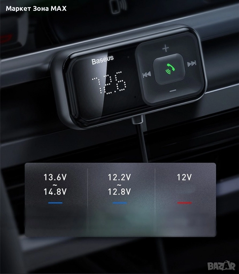 FM, USB Зарядно устройство и Трансмитер за кола с цифров дисплей