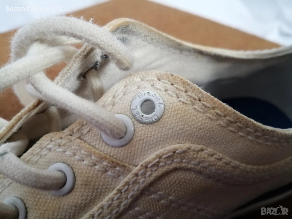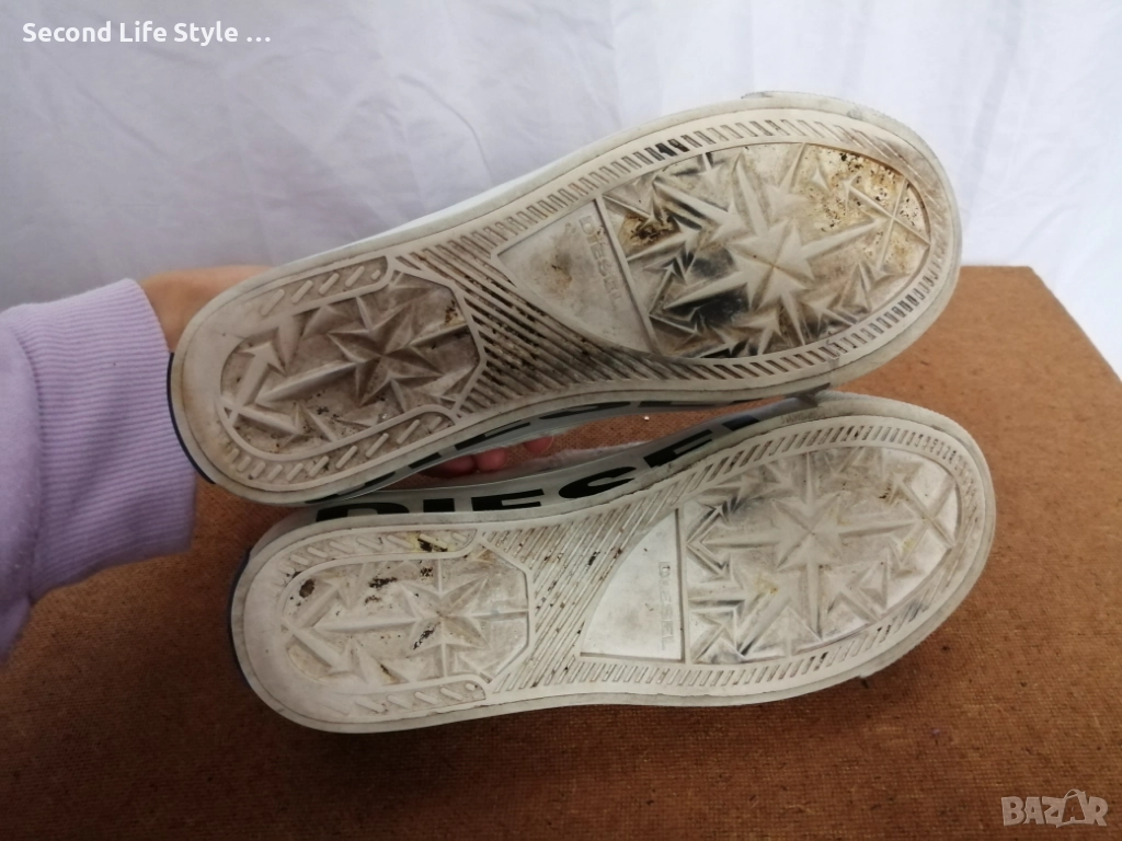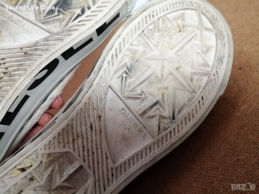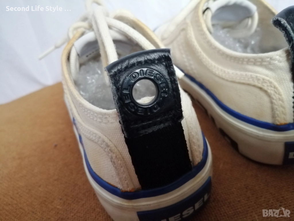 Небрежният стил е преработен със силно брандиране, отпечатано върху вътрешната част на подметката, с връзки, емблематично лого и лого на Diesel на задната част на петата.