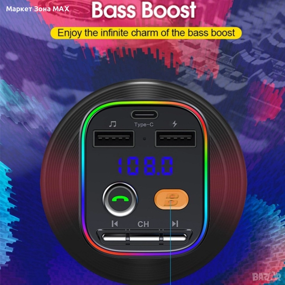 FM, Bluetooth Трансмитер за кола с 2 USB и 1 USB type-c HF58