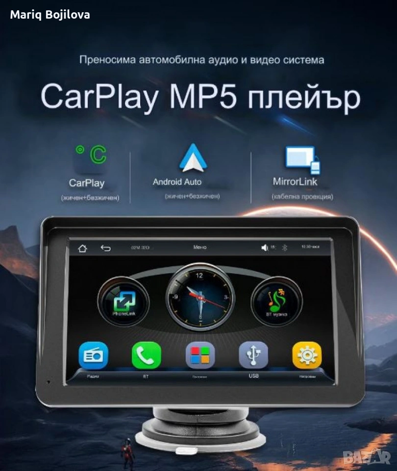 Waze, Монитор за кола, 7 инча екран, 1024x600 резолюция, MP5, Carplay, Android Auto, GPS, Bluetooth