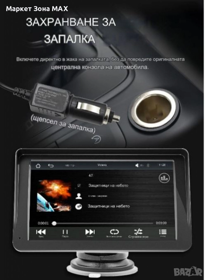 FM трансмитер: Позволява предаване на звук през автомобилните колонки;