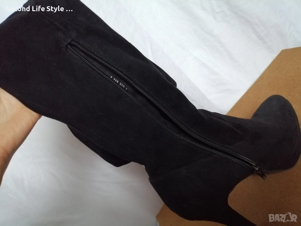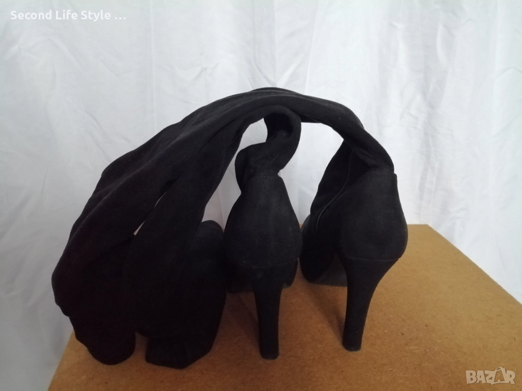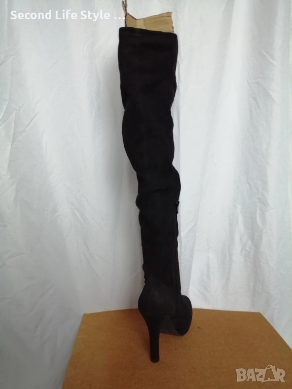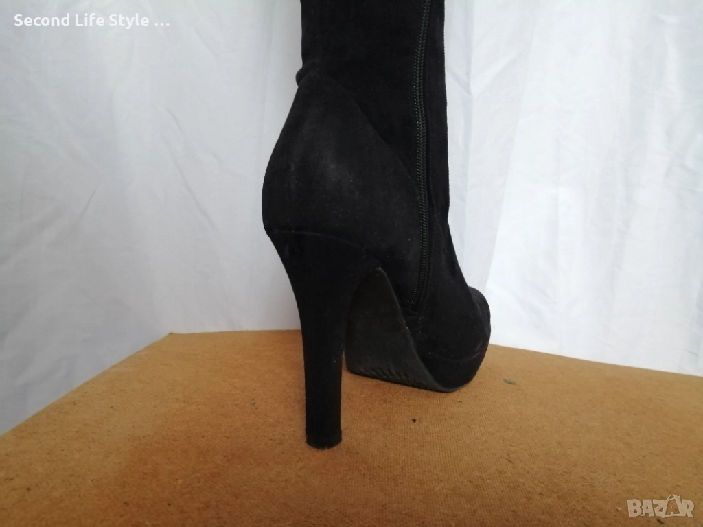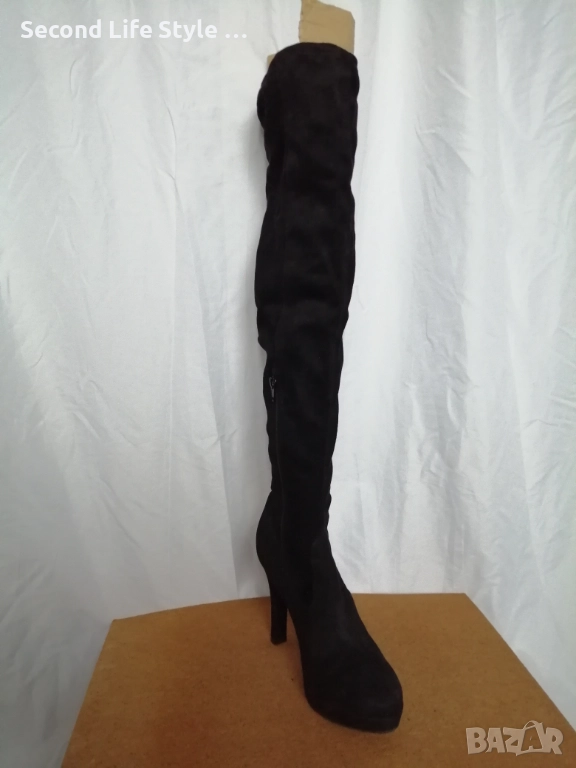 Елегантни дамски ботуши над коляното; с ток и платформа номер 40