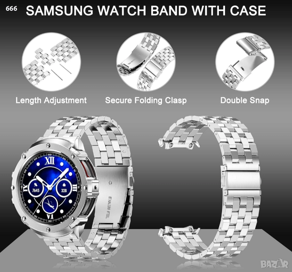 【Съвместимост】HASLFM Каишки от неръждаема стомана и метален корпус, съвместими със Samsung Galaxy Watch 6/5/4 (44 мм). Каишката на часовника с корпуса е подходяща за размер на китката 7"-9.5". (ЧАСОВНИКЪТ НЕ Е ВКЛЮЧЕН)