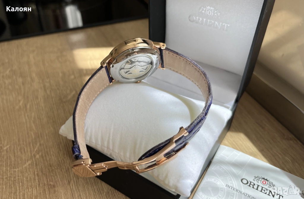 Продава се с тъмно синя каишка от истинска корокодилска кожа + допълнителна катарама, която удължава живота на каишката.