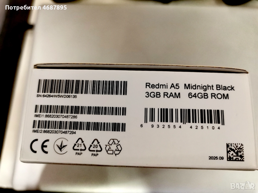 Телефон Redmi A5 + Гаранция, снимка 1 - Други - 52878921 Телефон Redmi A5 + Гаранция, снимка 2 - Други - 52878921 1/2