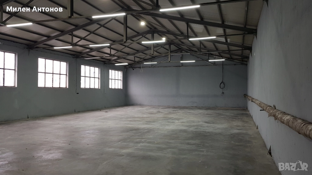 метра и 5 метра на билото. Под - шлайфан бетон. Врата към склада и 3 х 3 метра,
