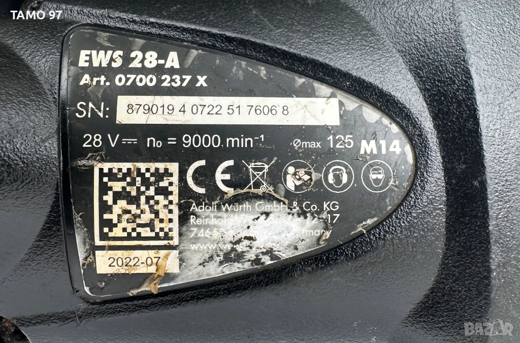 Wurth EWS 28-A - Мощен акумулаторен ъглошлайф 2x28V 3.0Ah 2022г.