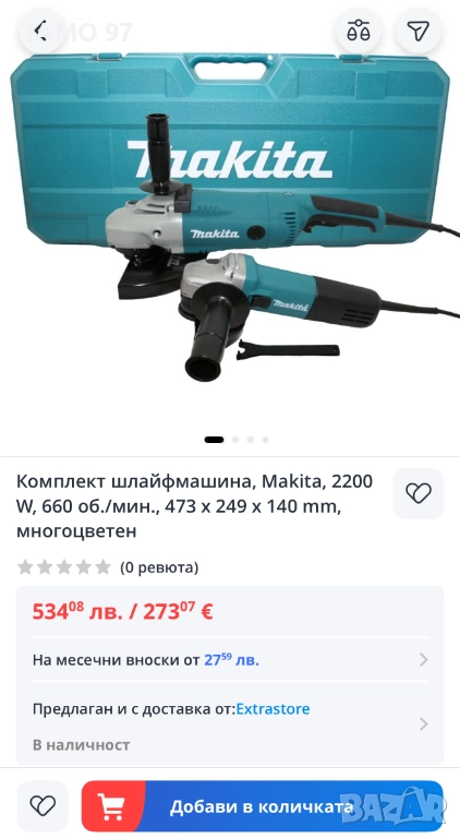 Продавам комплект от голям и макък ъглошлайф на Макита в отлично визуално състояние и работят перфектно, внос от Франция. Обявената цена включва голям мощен ъглошлайф, малък ъглошлайф и оригинален куфар за транспортиране. Пращаме с преглед и тест с куриерска фирма еконт може и лично предаване за гр. Шумен. Магазинската цена на комплекта е:273евро