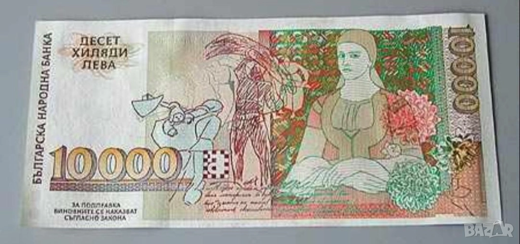 Банкнота 10000 лева 1996г. - запазете българския дух и част от историята.