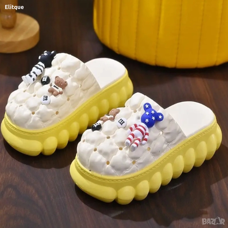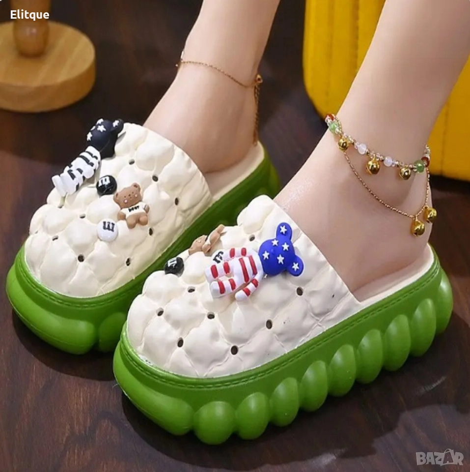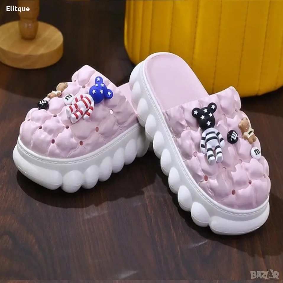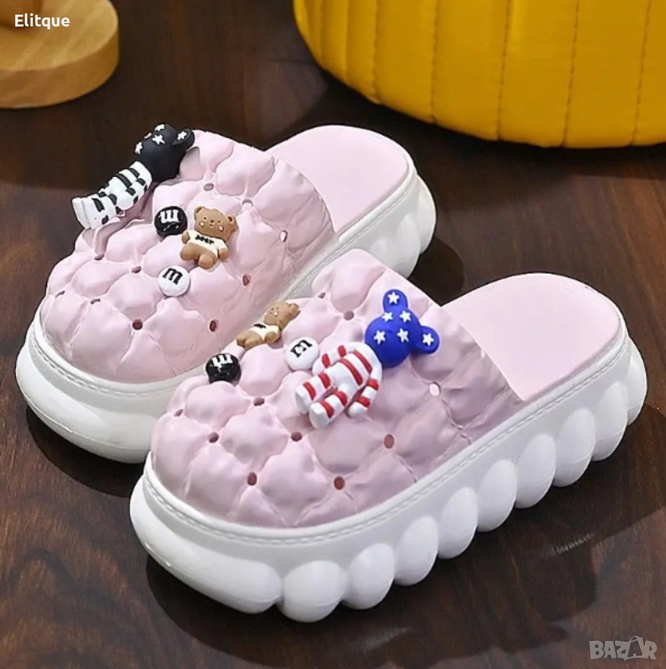 Леки и удобни затворени дамски високи чехли с декоративни елементи