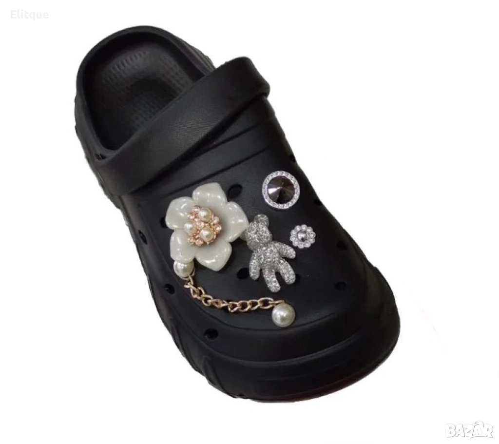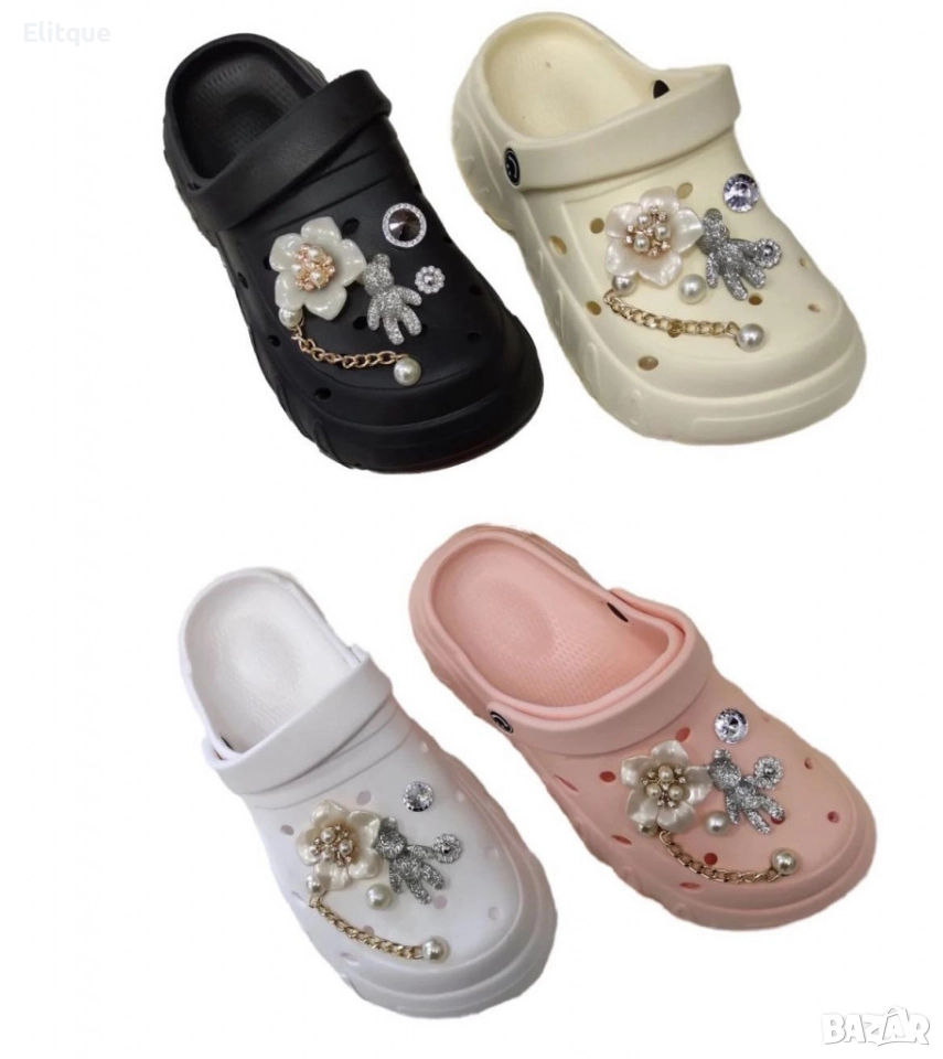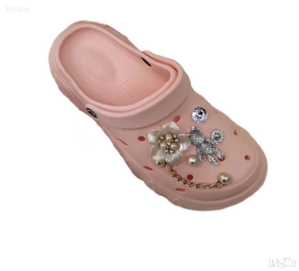 Супер леки и удобни дамски затворени чехли с дупки и декоративни елементи