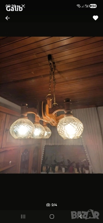 Стар абажур, полилеи ,лампа, рустикал, изработена от масивно дърво → Обява 52880413