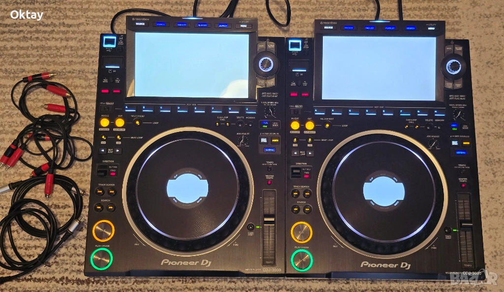 Плеърите са минали пълна профилактика преди седмица и са безупречни. С много леки следи от употреба. Ползвани са 3 летни сезона в петък и събота. Продават се поради ъпгрейд с 3000Х. В комплекта са всички кабели - захранващи, чинчове amphenol, spdif и LAN кабел. Чантите са UDG Creator на стойност около 500лв. Чантите нямат скъсано или протрито. Циповете също са здрави. Техниката не е разнасяна наляво-надясно и е складирана правилно, когато не се ползва. Към комплекта има подарък преносимо SSD Micron 1TB с USB-C + USB-A. Може да се видят и тестват при мен във Варна. За връзка ЛС.