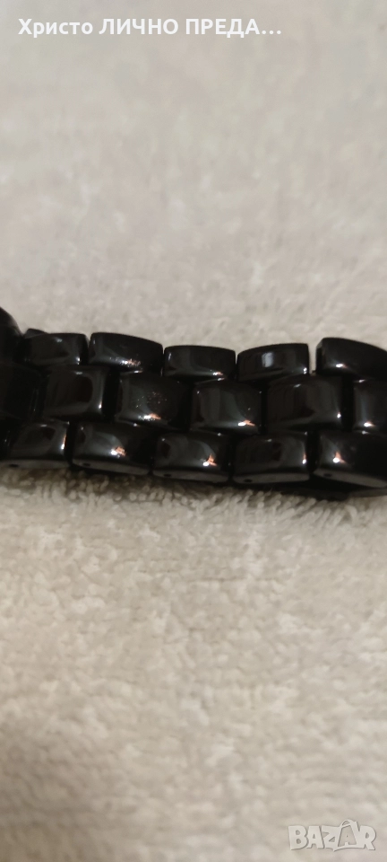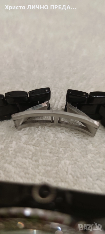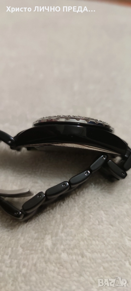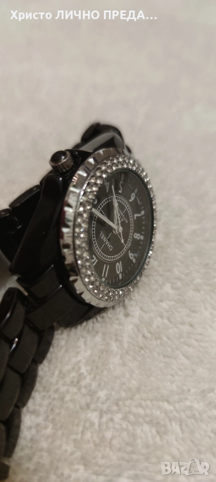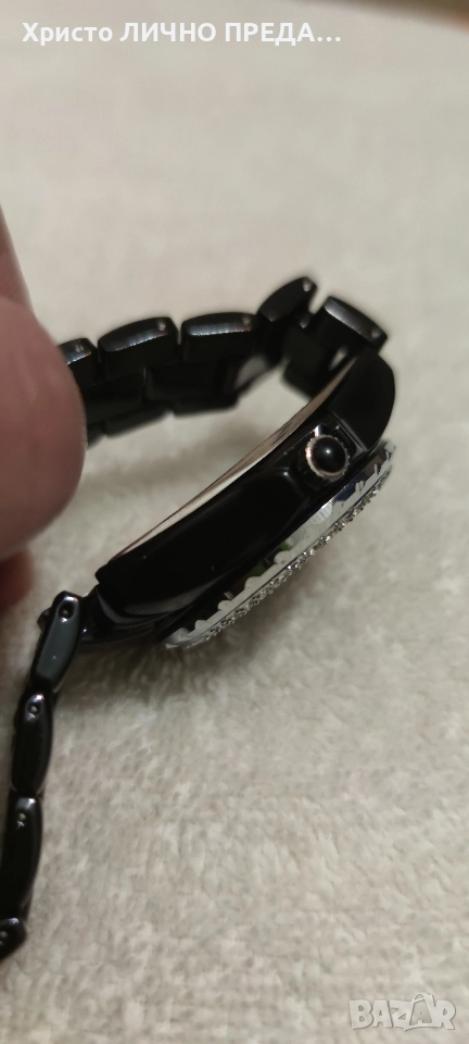 На живо е прекрасен.Уникална изработка!!! Цена на оригинала 10 000$. Керамика, стъкло сапфир кристал, водоустойчив, автоматичен, дебелина 12 мм.Тегло 250 грама. All black ceramic case. Steel rimmed bezel set with 2-rows of VS Quality Top Wesselton black diamonds. All black ceramic bracelet. Black lacquered dial with applied white Arabic Numeral hour markers. White hands with luminescent hight-lights. Painted white minute & seconds track indexes. Luminescent Hour index markers. Date window located between the 4 & 5 o'clock position.