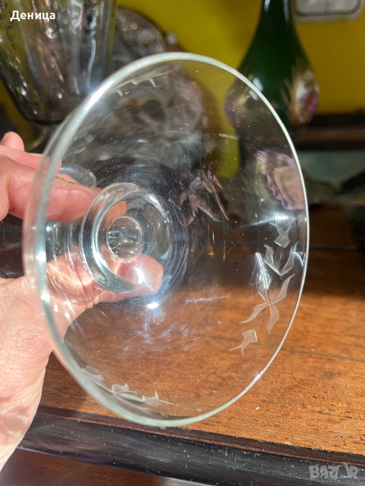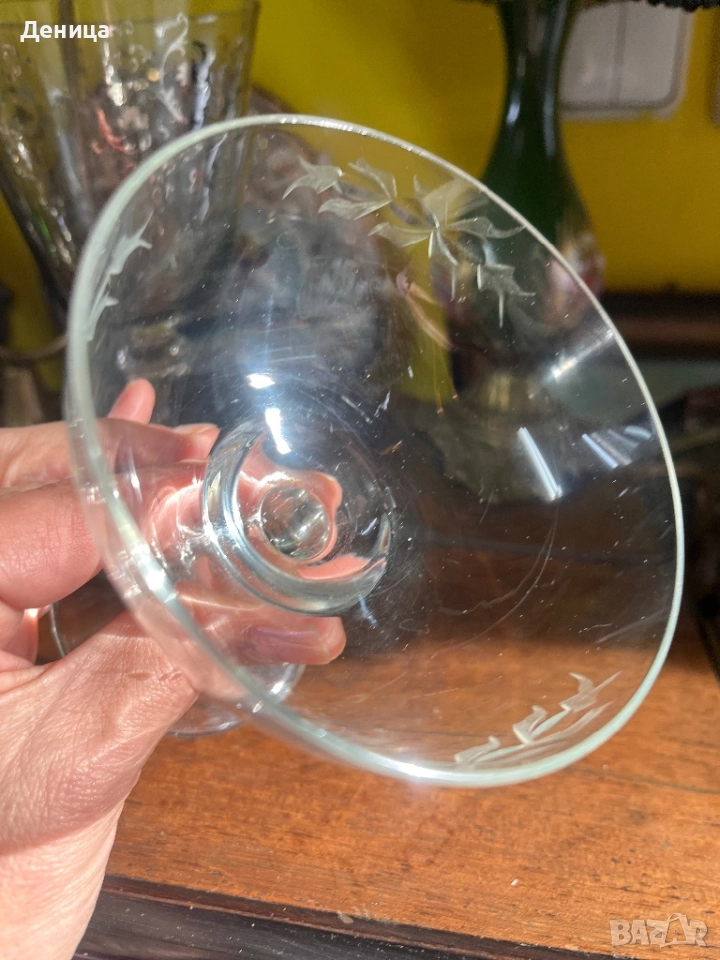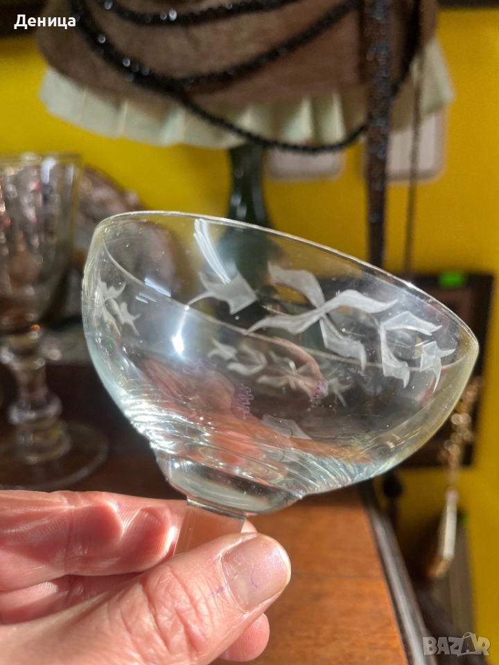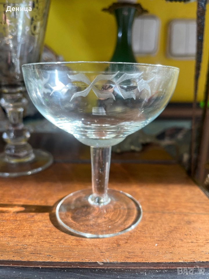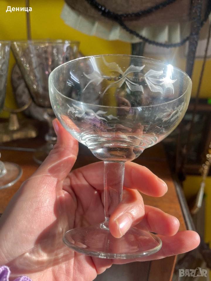 6 чаши за шампанско- Българско калиево стъкло Елегантни, стилна гравюра, подходящи за красиво → Обява 52881046