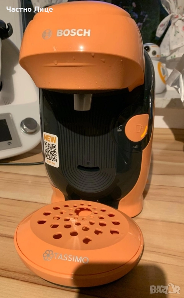 Bosch Tassimo + Капсули Милка Какао в свеж оранжев цвят. Машината е използвана съвсем малко и е в безупречно състояние – без никакви следи от употреба, драскотини или захабяване. Работи перфектно! Благодарение на компактния си дизайн, тя е идеална за всяка кухня, дори и за най-малките пространства. Основни предимства и характеристики: Напълно автоматична: Приготвяне на напитката само с натискането на един бутон. Интелигентна технология Intellibrew: Машината сама разчита баркода на капсулата (T-Disc) и настройва точното количество вода, температура и време за приготвяне. Голямо разнообразие: Можете да избирате от над 70 вида напитки – еспресо, капучино, лате макиато, горещ шоколад и чай на известни марки (Jacobs, Milka, L'OR и др.). Бърза работа: Без време за загряване – машината е готова веднага. Лесна поддръжка: Автоматична програма за почистване и премахване на котлен камък. Мощност: 1400W за бързи и качествени напитки. Резервоар за вода: 0.7 литра. Състояние: Неразличима от нова! Почистена и готова за следващия си собственик. Комплектът включва: Кафемашина и оригинална поставка за чаши. Изпращам по Еконт или Спиди с опция "Преглед и тест" за цялата страна. За Добрич е възможно и лично предаване.