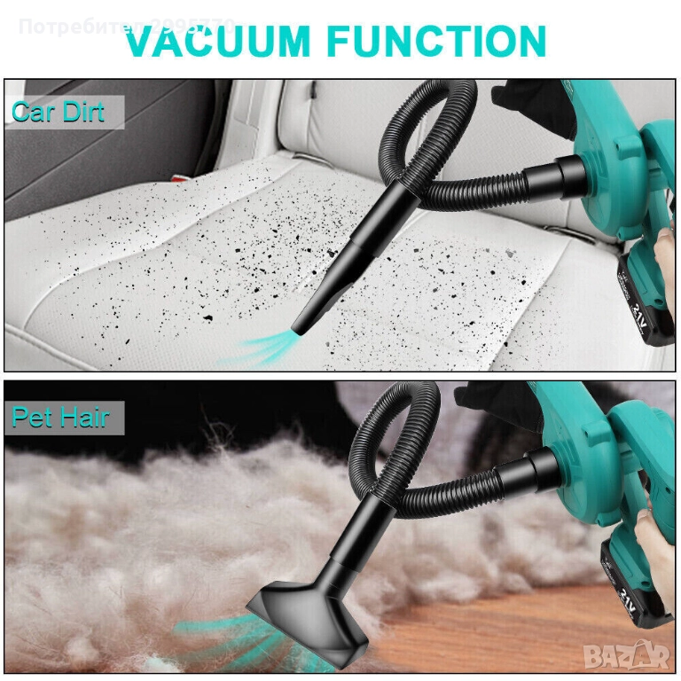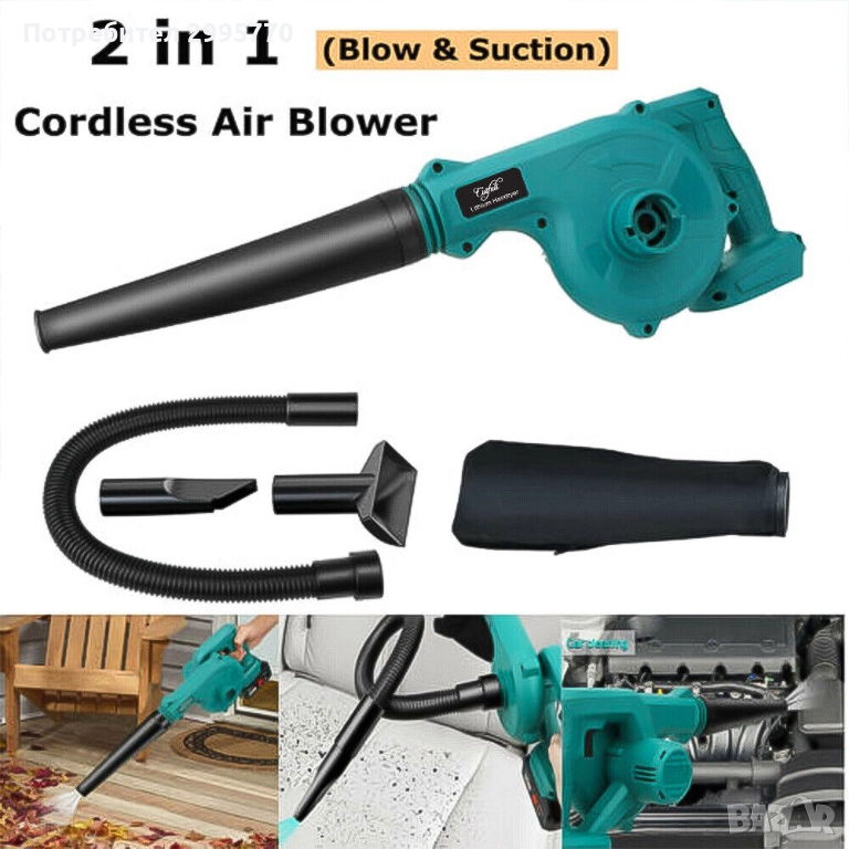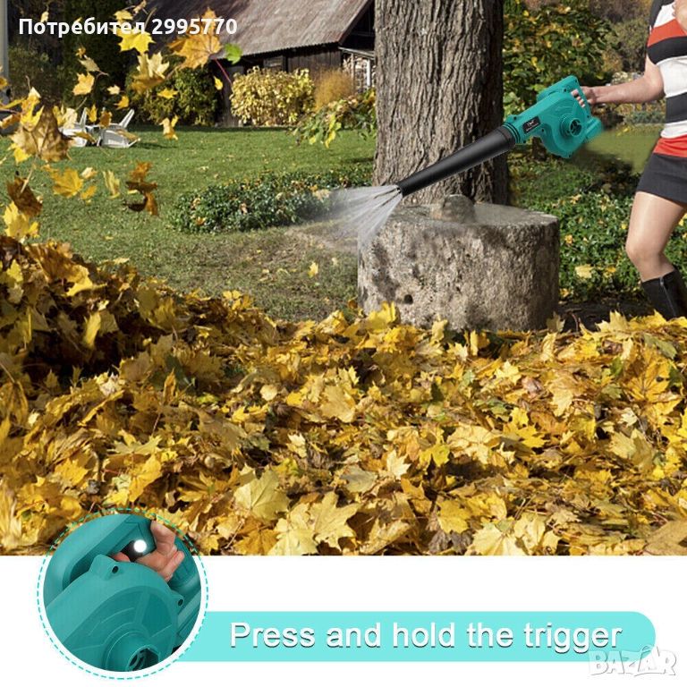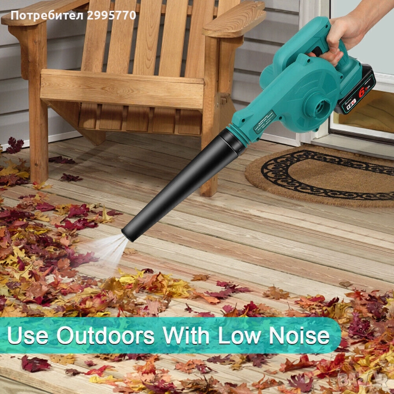 енергия. Може да се използва на открито за издухване на паднали листа и чимове,