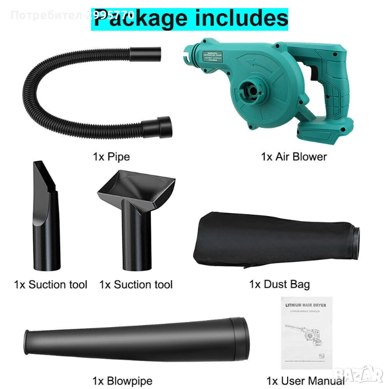 1. Това е мощен вентилатор, който използва батерия като източник на