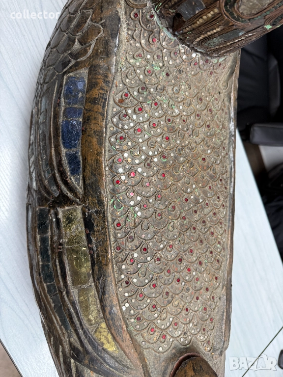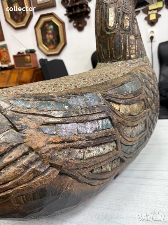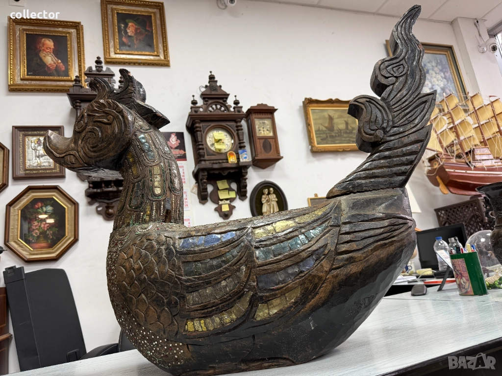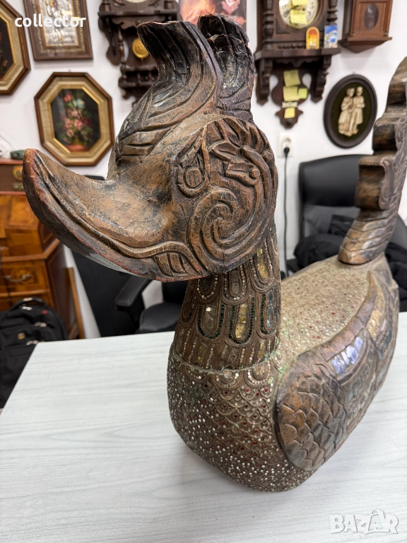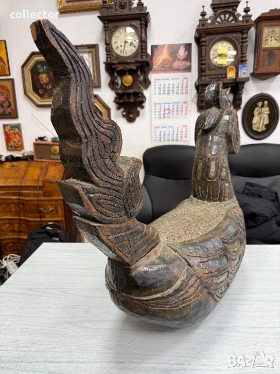 Дървена скулптура / дърворезба / фигура на птицата Хинта №7782