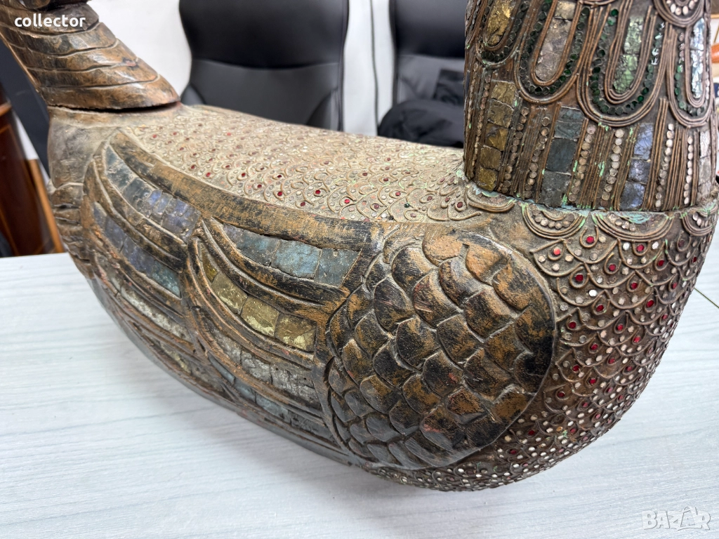 скулптура, изобразяваща свещената птица Хамса (Hamsa), известна още като Хинта или Хонг. Тази забележителна скулптура носи духа на традиционното изкуство на Югоизточна Азия.