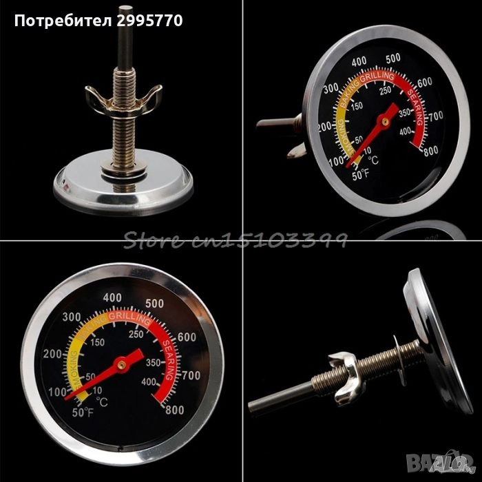 2. Цветен механичен термометър от неръждаема стомана за барбекю, печки за опушване или готвене. От 10-400 градуса по