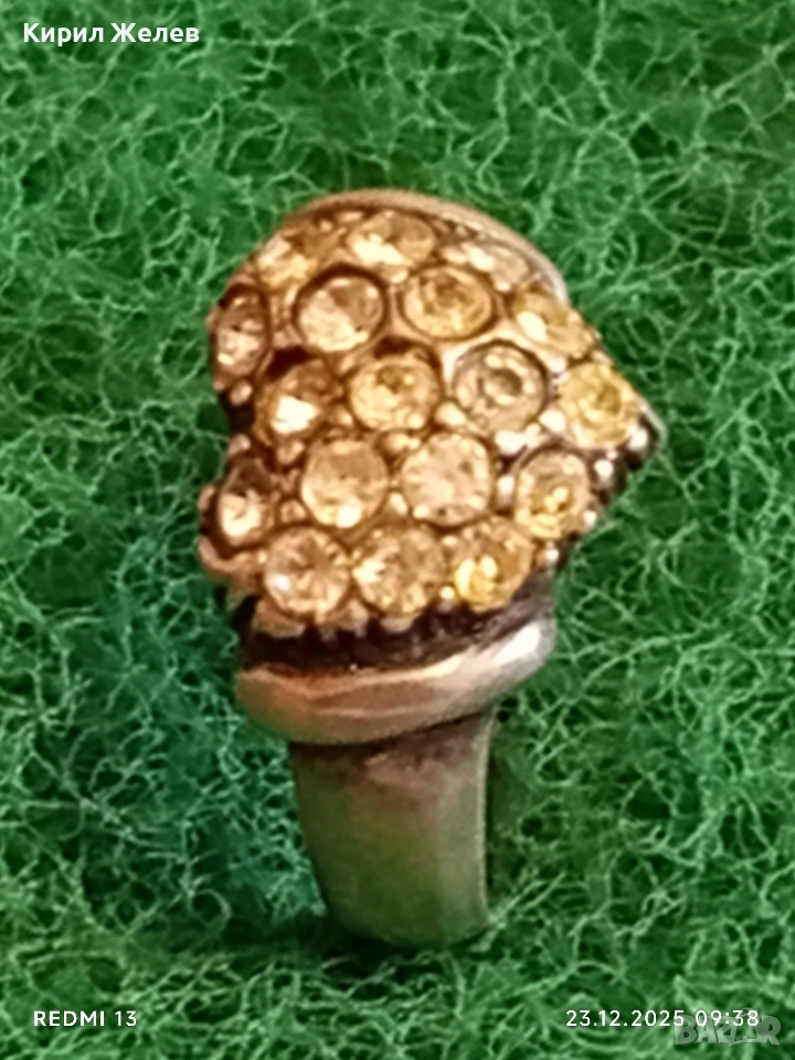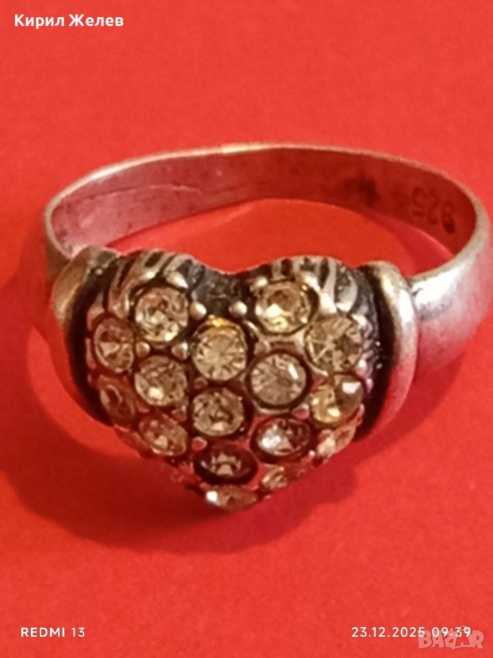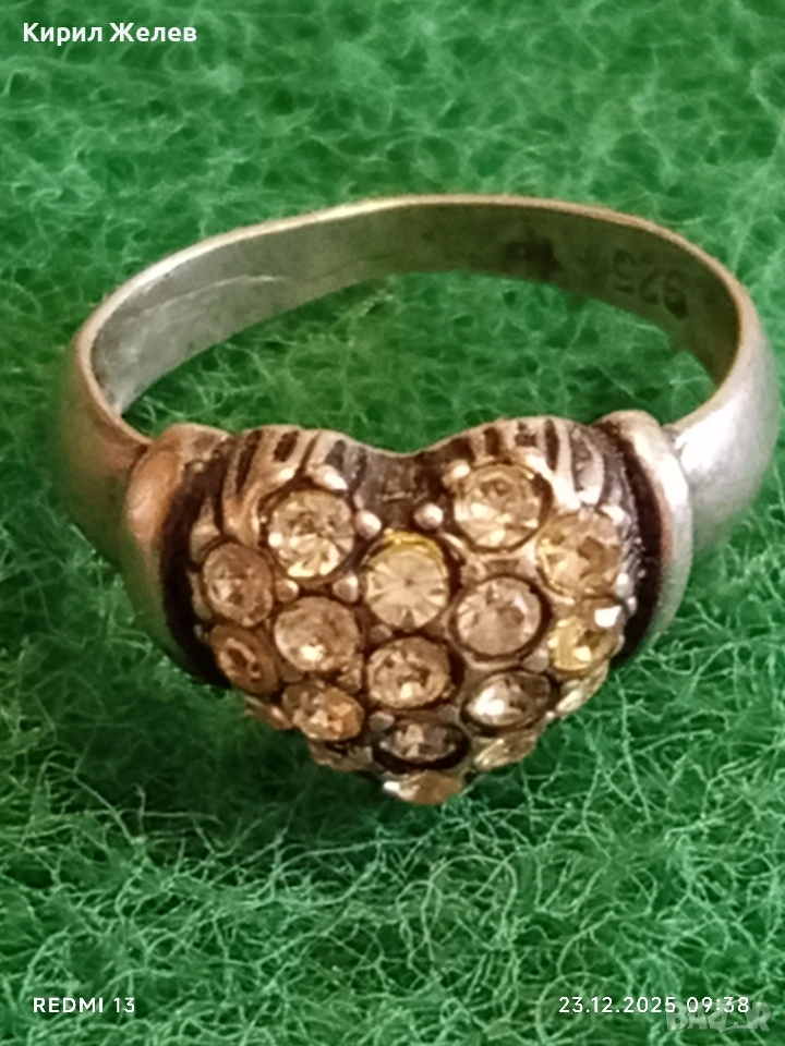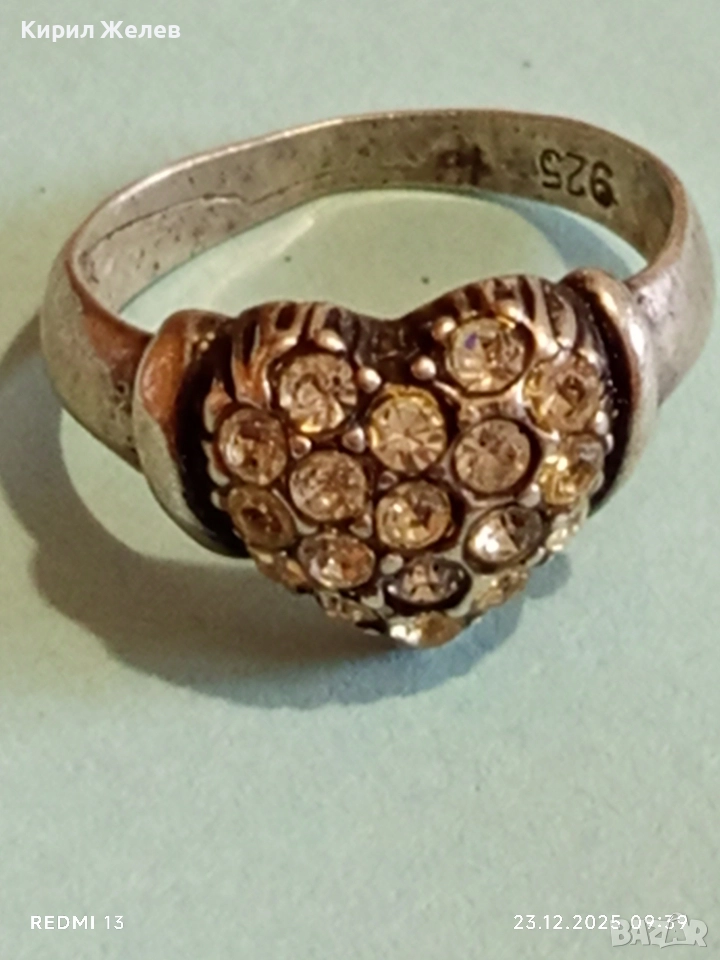 Сребърен пръстен с формата на сърце ❤️ с инкрустиран ПЛАНИНСКИ КРИСТАЛ ювелирна изработка 34457