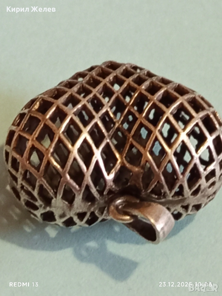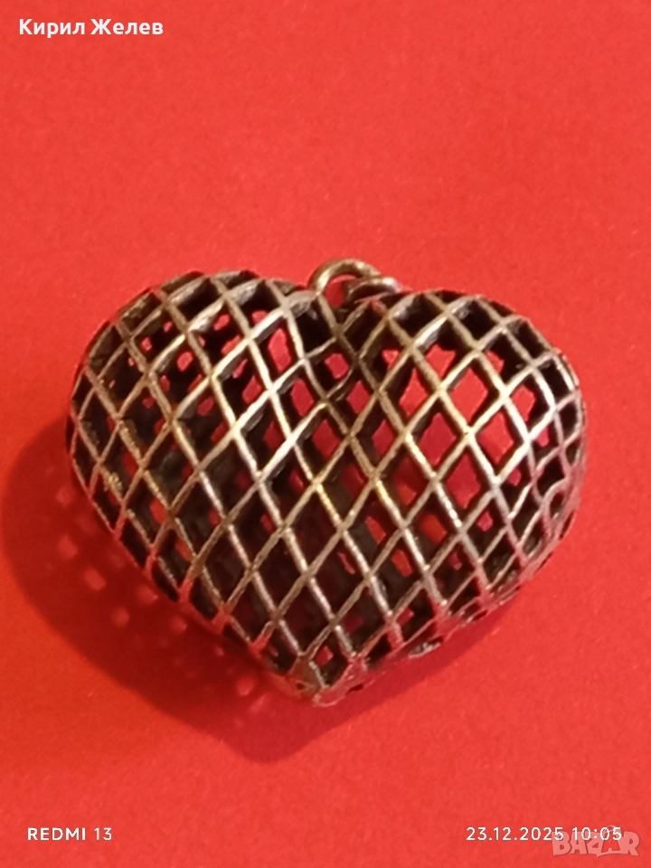 Арт сърцевиден сребърен медальон пендант финна ръчна изработка 40194