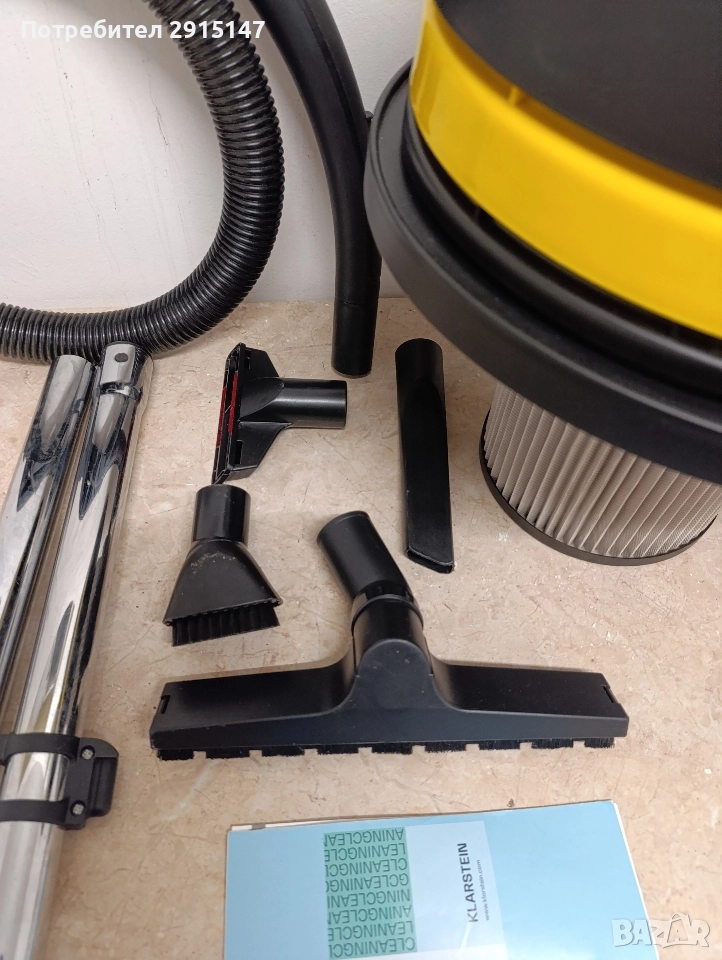 Klarstein е убурудвал прахосмукачката за сухо и мокро засмукване с 50-литров контейнер от неръждаема стомана с висока якост и устойчивост на корозия и мръсотия.